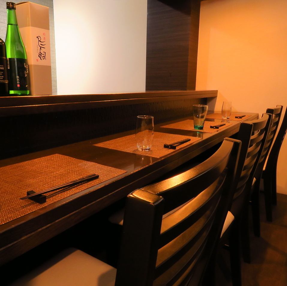 We can accommodate 2, 4, or 6 people! We also accept small drinking parties. The stylish and elegant black table seats will lift your spirits the moment you sit down! Perfect for celebrations! The counter seats, where you can enjoy delicious food and drinks while watching the cooking, are also comfortable and recommended for people dining alone after work.The private room with a sunken kotatsu table can be partitioned off for easy foot space.